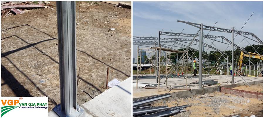 ► Thi công khung vách bằng thép mạ kẽm hoặc thép mạ nhôm kẽm theo kích thước của kiến trúc căn nhà
